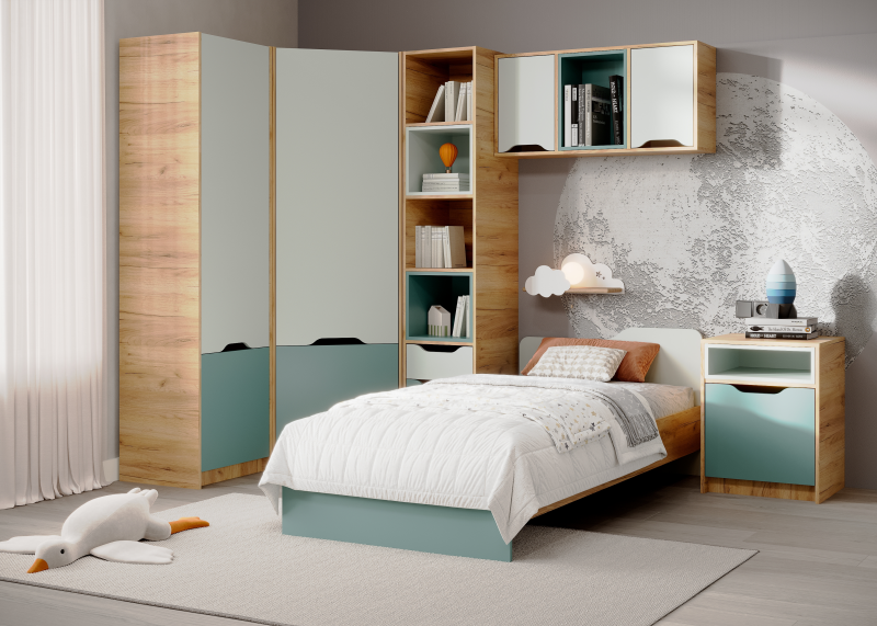 Детская комната RICH 2 — дуб крафт золотой / пастельный зелёный / сумеречный голубой
