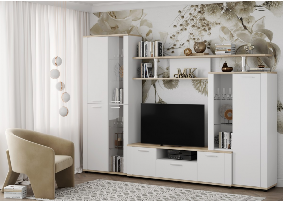 Стеклостворка ПРАВАЯ для гостиной Соло - 10А Белый гладкий. Опция предназначена для исполнения «Шкаф низкий» с левой стороны. Стеклостворка представляет собой планку из ЛДСП со вставленным в паз стеклом.