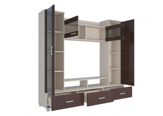 • Фасад и корпус стенки изготовлены из ламинированной ДСП