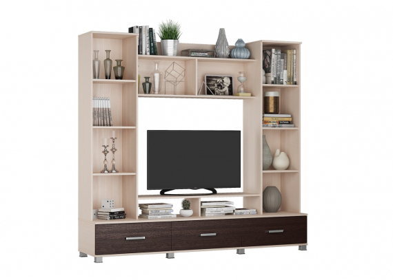 Очень хорошо смотрится. Не громоздкая, но вмещает в себя очень очень много. Много пространства для будущего телевизора.