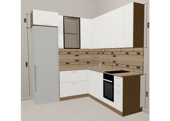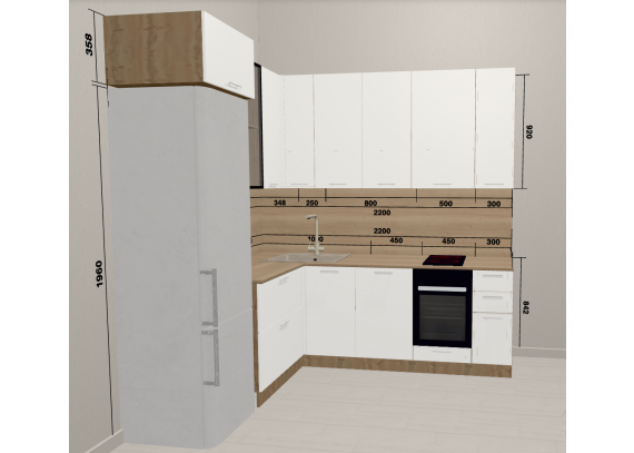 Кухня Валерия 2,2 × 1,4 м — это современная модульная система, сочетающая функциональность, стиль и надёжность. Белые матовые фасады цвета Айленд Силк в комбинации с корпусом Дуб вотан создают сбалансированный и актуальный образ, подходящий как для светлых интерьеров, так и для контрастных решений.