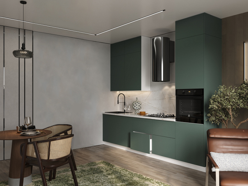 Модульная кухня Эстетик 3000 Форест Грин МДФ — это стильное и функциональное решение для современной кухни. Гарнитур выполнен в элегантной комбинации фасадов цвета Форест Грин и белого корпуса, что создаёт визуальную свежесть, глубину и элегантность. Композиция легко адаптируется под любые планировки и обеспечивает удобство в готовке и хранении.