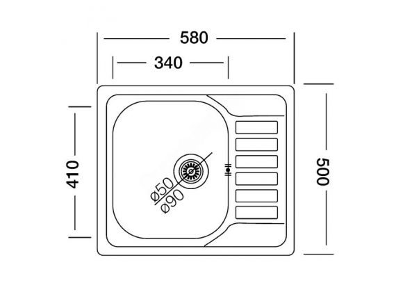 Мойка из нержавеющей стали, врезная, прямоугольная, с выпуском 3 1/2", без сифона.