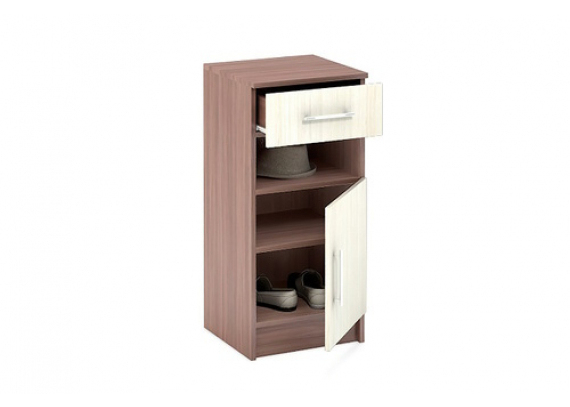 Обувница Машенька ТБ 201 очень удобная и вместительная. Имеет несколько зон для хранения вещей: верхний отдел – выдвижной ящик на роликовых направляющих, снизу – небольшой шкафчик и открытая ниша над ним.