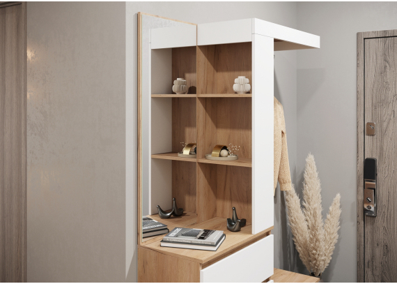 Благодаря своим компактным размерам прихожая Хелен прекрасно подходит для помещений любой площади. Она отлично впишется как в маленькую прихожую квартиры, так и в просторную комнату в доме. А цветовое исполнение позволит органично вписать прихожую в различные интерьеры. В прихожей используются шариковые направляющие полного выдвижения, что обеспечит комфортное использование прихожей на протяжении многих лет.