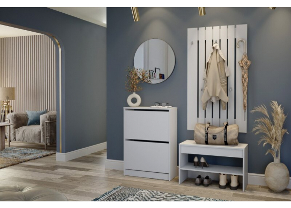 Вешалка настенная Лофт из модульной коллекции Лофт. Крючки пластиковые в цвете металлик. Вешалка изготовлена из ЛДСП 16 мм. Торцевые детали закромлены кромками ПП в белом цвете.