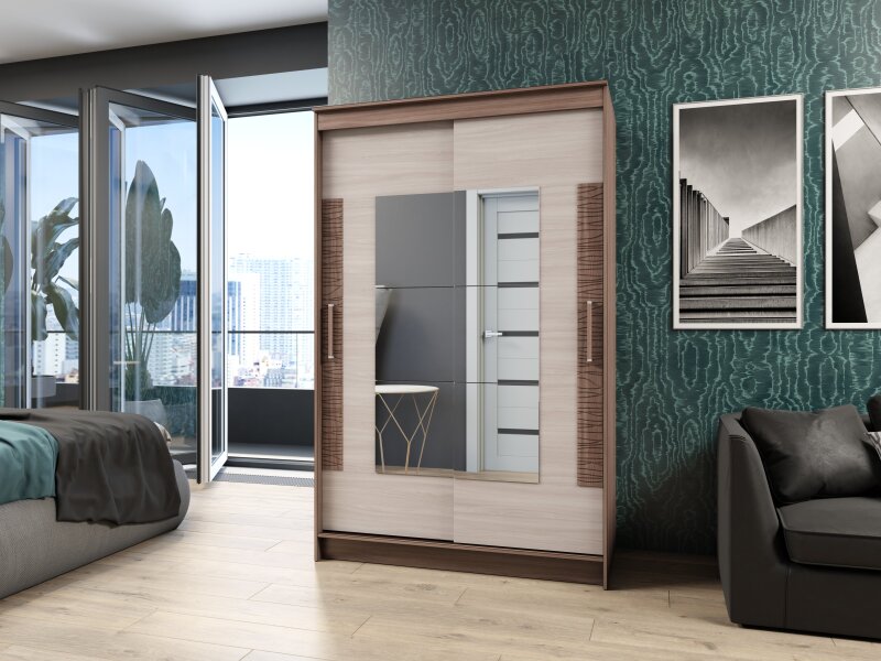 Шкаф-купе Элегант – выгодное решение при организации комнатного интерьера. Светлые тона в сочетании с зеркальной поверхностью дают визуальный эффект расширения пространства. Удачная эстетика сочетается с надежностью в эксплуатации и практичностью. При небольших параметрах шкаф вместителен. Он имеет необходимый набор блоков для размещения различного рода вещей.