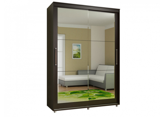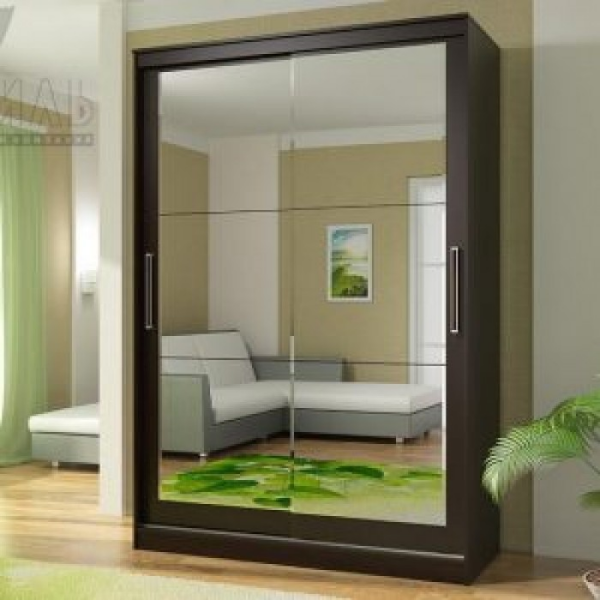 Огромные зеркала, украшающие фасад этого шкафа, а также эргономичные двери-купе идеально подойдут для интерьера ограниченного пространства, такого как прихожая или небольшая жилая комната. Шкаф выпускается в двух вариациях, которые отличаются по длине и функциональному наполнению.