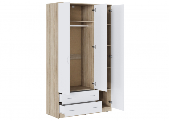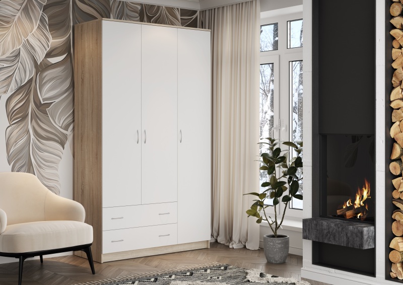 Шкаф Комфорт-10 – это оптимальный вариант для хранения одежды и вещей в спальне. Отделение со съемными полками, секция со штангой и два вместительных выдвижных ящика – место предусмотрено для всего. Благодаря своей натуральной расцветке и сочетанию темных и светлых оттенков, шкаф является универсальным решением для меблировки любого помещения, будь то светлый или темный интерьер. Дизайн шкафа с его четкими линиями и аккуратными ручками придется по вкусу приверженцам строгого стиля, без лишней вычурности и пафоса. Экологичные материалы и надежная фурнитура станет залогом комфорта в эксплуатации на долгие годы.
