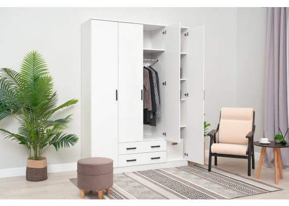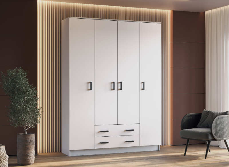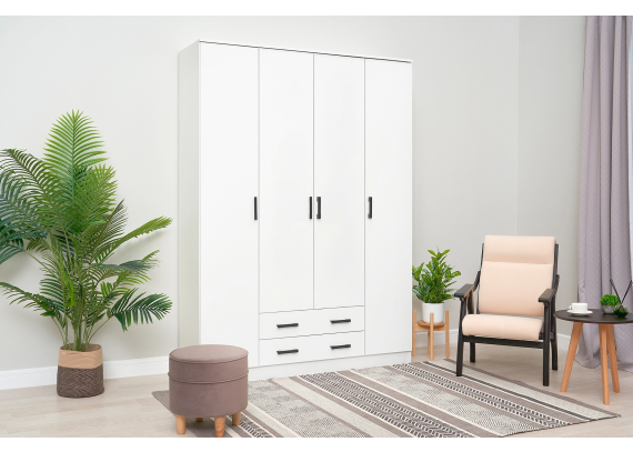 Шкаф "Квадро" — вместительное и практичное решение для хранения, выполненное в современном цвете: светлый фасад и корпус Белый гладкий. Четырёхдверная конструкция позволяет организовать пространство максимально удобно и функционально.