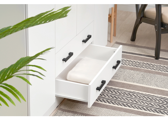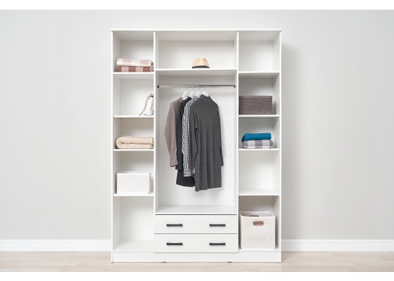 Этот шкаф идеально подойдёт для спальни или гардеробной, обеспечивая порядок и гармонию в интерьере.