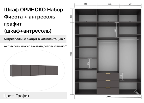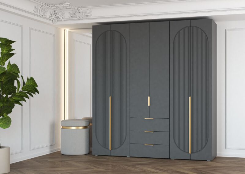 Шкаф 6-створчатый Фиеста Графит/Графит софт — это многофункциональная модель с лаконичным дизайном, идеально подходящая для спальни, подростковой комнаты или гардеробной зоны. Корпус выполнен из ЛДСП, фасады — из МДФ в элегантном сочетании оттенков Графит и Графит софт, что придаёт шкафу современный и строгий вид.