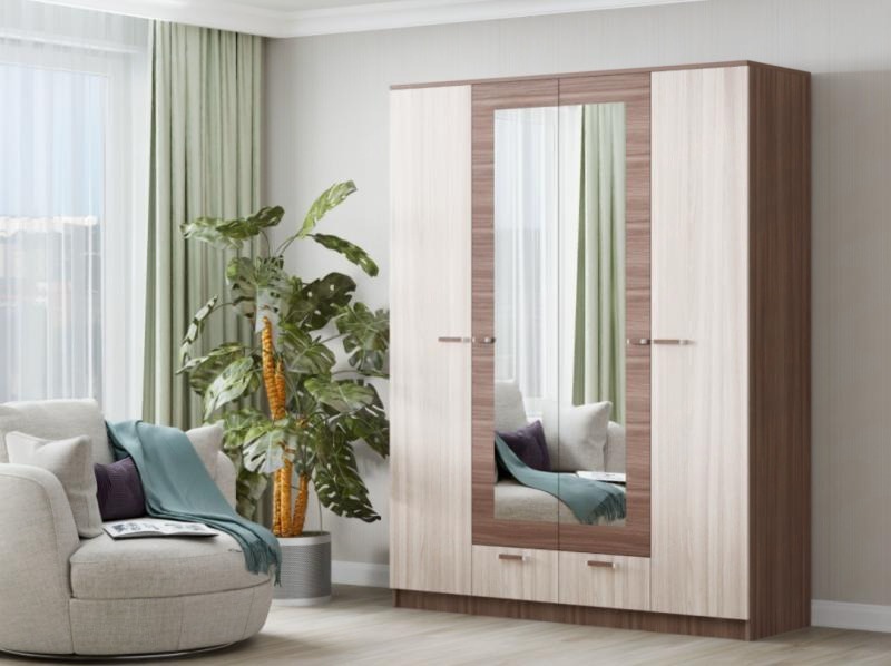 Шкаф Адель – модель современной мебели из качественных и экологичных материалов. Он оснащен большим и вместительным плательным отсеком, в котором можно аккуратно и удобно разместь много вещей. Шкаф дополнен зеркалом в полный рост, что делает его наиболее подходящим для ежедневного использования. Лаконичная фурнитура придает модели дополнительный лоск.