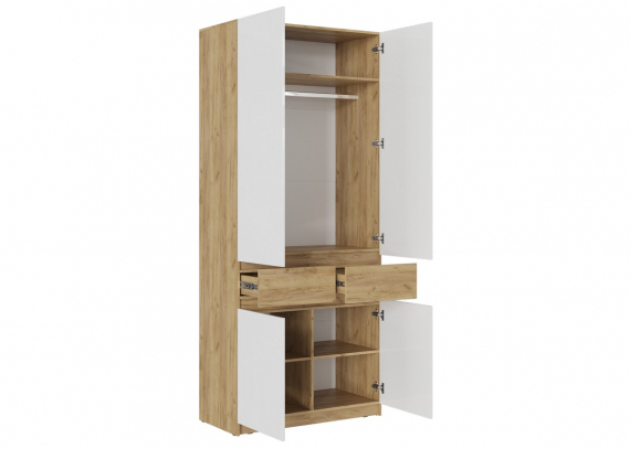 Шкаф Бостон ШК-001 - это практичный и вместительный 2-створчатый шкаф, который несомненно станет идеальным выбором для спальни или гардеробной комнаты. Его многофункциональность – это то, что делает его по-настоящему уникальным. Шкаф оснащен двумя выдвижными ящиками на шариковых направляющих, что позволяет удобно хранить различные вещи. Металлическая штанга специально предназначена для хранения одежды, обеспечивая удобство и функциональность. В дополнение к этому шкаф оснащен большим количеством полок. Шкаф выполнен без ручек, все его элементы открываются за фасад. Для этого предусмотрены специальные зазоры между фасадами, прикрытые декоративными планками. Высота шкафа позволяет по максимуму использовать ограниченное пространство комнаты.