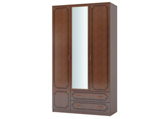 Стиль и компактность: трёхдверный шкаф «Лотос» — это гармоничное сочетание классического дизайна и практичного наполнения. Цвет орех лак с глянцевым эффектом подчёркивает текстуру древесины, добавляя интерьеру уют и солидность.