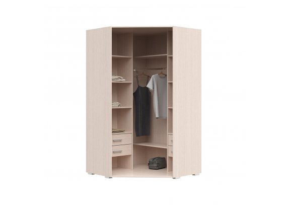 Шкаф угловой 2-створчатый Симба является элементом модульной детской Симба. Конструкция шкафа очень проста и удобна в эксплуатации. Угловой шкаф имеет функциональное внутреннее наполнение: полки, выдвижные ящики и штанга для одежды. Внутри шкаф очень вместительный, что позволит хранить там любые вещи и предметы гардероба.