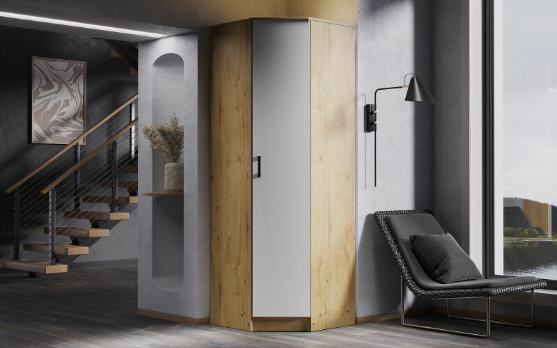 Шкаф угловой – универсальный элемент при меблировке комнат. Он прекрасно вписывается в интерьер и позволяет по максимуму использовать пространство. Изделие универсально в использовании и может быть расположено в любом из удобных углов, легко перемещается. Выбрав данное цветовое решение, Вы прекрасно дополните свою оригинальную обстановку, не нарушая гармонии дизайна.
