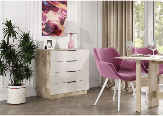 Комод "Бохо КМ-001" — стильное и функциональное решение для современного интерьера. Элегантное сочетание цветов Дуб крафт серый и Кашемир придаёт изделию утончённый и универсальный вид, который прекрасно дополнит остальные модули коллекции Бохо.