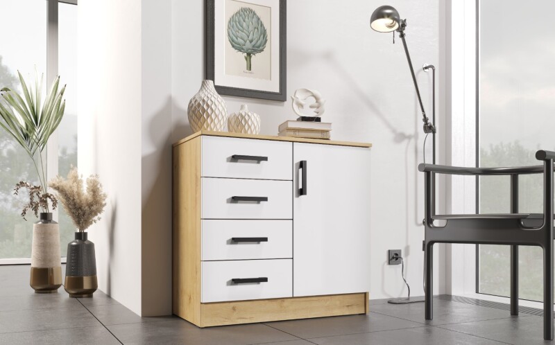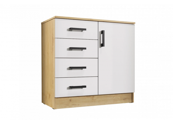 Комод К800 1Д имеет современный дизайн и представляет собой элегантное и функциональное решение для вашего интерьера. Комод выполнен из высококачественного ЛДСП, что гарантирует долговечность и прочность изделия. Комод оснащен 4-мя выдвижными ящиками на роликовых направляющих и одной распашной дверью, что обеспечит большой объем для хранения вещей, аксессуаров и других предметов.