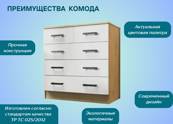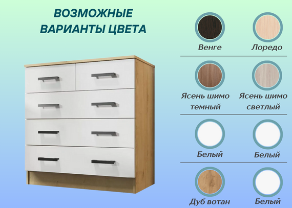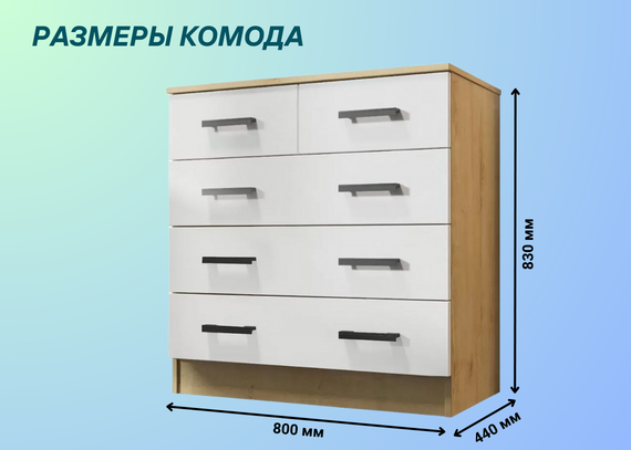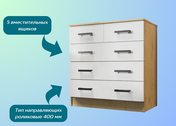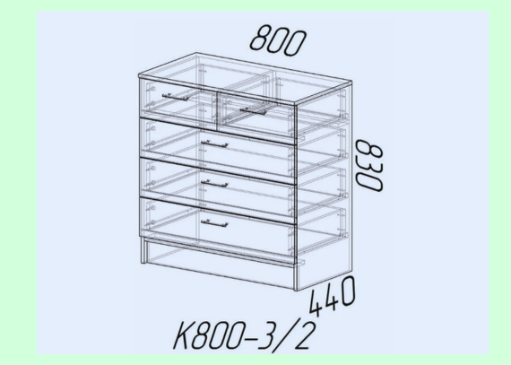 Комод К800 3/2 имеет современный дизайн и представляет собой элегантное и функциональное решение для вашего интерьера. Комод выполнен из высококачественного ЛДСП, что гарантирует долговечность и прочность изделия. Комод оснащен 5-ю выдвижными ящиками на роликовых направляющих, что обеспечит большой объем для хранения вещей, аксессуаров и других предметов.
