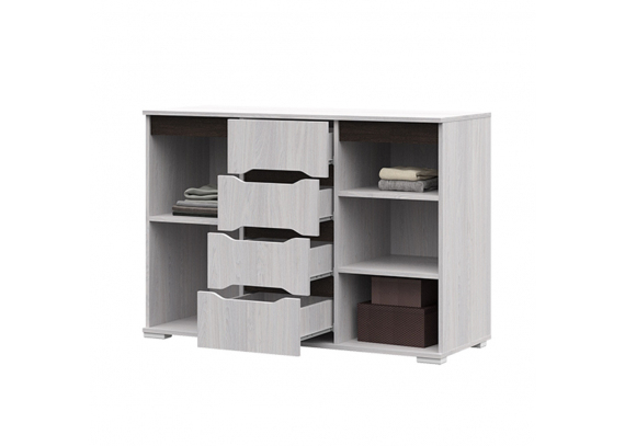 Комод Валенсия КМ-012 является элементом модульной спальни Валенсия. Комод имеет стильный внешний вид и функциональное наполнение. Комод оснащен 4-мя выдвижными ящиками на роликовых направляющих и двумя распашными дверцами для хранения разных вещей. Комод Валенсия прекрасно впишется в интерьер вашей спальни.