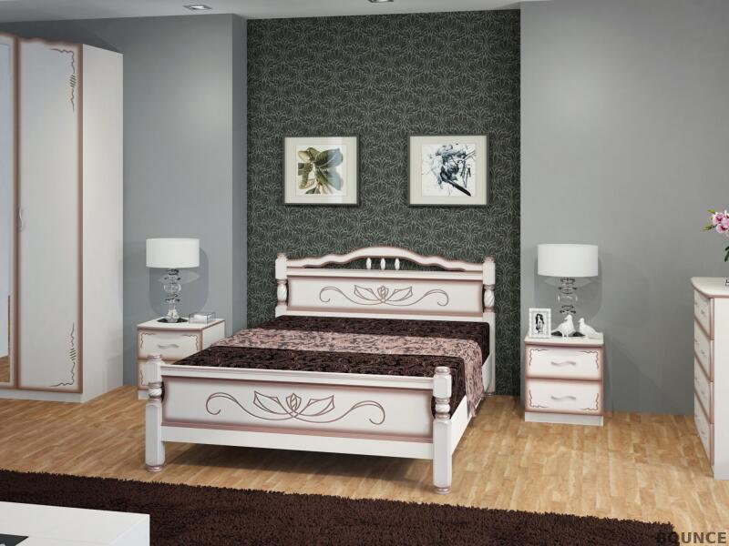 Стильная и элегантная кровать Карина-5 гармонично впишется в любой интерьер и подарит комфортный отдых. Резьба на ножках и спинках кровати освежают внешний вид и придают ей особую изюминку, что сделает обстановку спальни еще прекраснее. Может быть укомплектована Спальным Гарнитуром Лакированный, или Спальным Гарнитуром Идиллия.