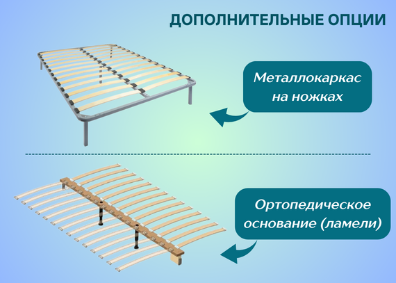 Основанием под матрас может служить металлокаркас или ортопедические ламели.