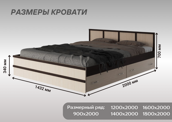 Кровать Сакура — это элегантный предмет мебели, который станет украшением вашей спальни. Её стильный дизайн, удобство и надёжность обеспечат комфортный сон, а просторные ящики — порядок и дополнительное место для хранения.