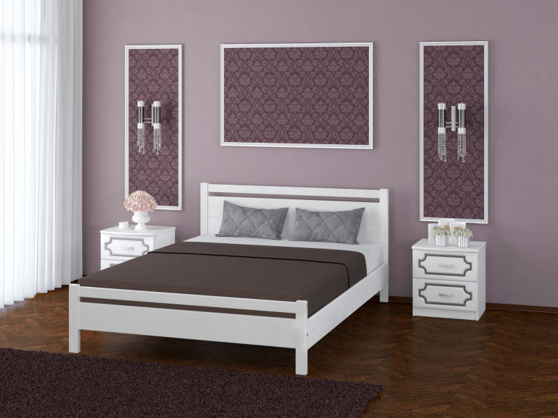 Кровать может быть укомплектована Спальным гарнитуром «Лакированный» или Спальным гарнитуром «Идиллия».