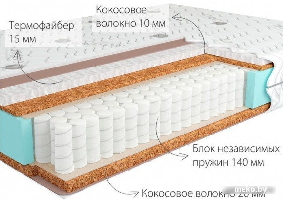 Натуральное кокосовое волокно – В состав матраса входит слой кокосового волокна, который обеспечивает дополнительную жесткость и поддержку, а также способствует циркуляции воздуха внутри матраса. Это делает матрас Kondor Medic 2 Tango идеальным выбором для людей, предпочитающих более жесткие поверхности для сна.
