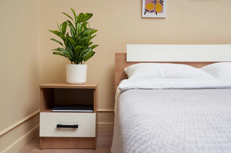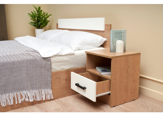 Прикроватная тумба Эко – строгая и лаконичная модель современного дизайна. Тумба поможет разместить все необходимые мелочи в зоне быстрого доступа и сделать интерьер спальни более комфортным.