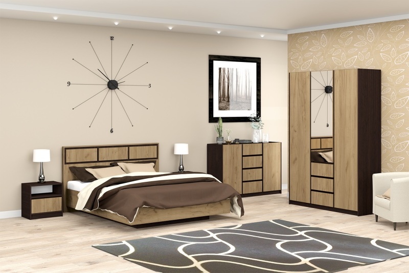 Спальня Флоренция - современный спальный гарнитур в темном варианте. Спальня выполнена с применением высококачественных, экологичных материалов. Кровать из комплекта оборудована основанием из ДСП. Набор мебели для спальни включает в себя всё необходимое для комфорта и уюта в спальне.