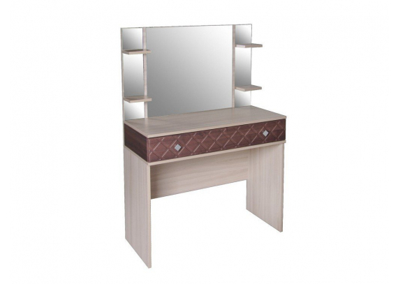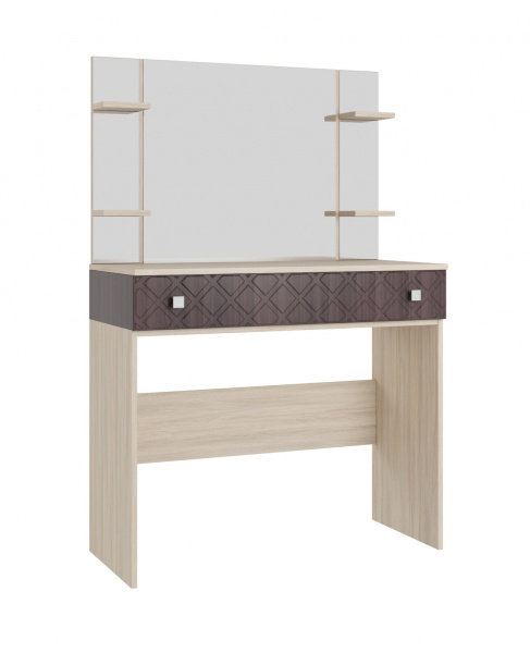 Стильный и действительно практичный туалетный столик Николь станет незаменимой вещью в вашей Спальне. Эффектный дизайн модели позволяет использовать такое трюмо как в светлой, так и в темной меблировке спальни, и, безусловно, являясь частью модульной системы Николь, впишется в нее идеально. Вместительный ящик позволит организовать пространство туалетного столика, а дополнительные открытые полки дадут возможность не убирать далеко самое нужное.